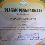 bertepatan dengan hari ini juga salah seorang utusan lomba dari mesjid Baiturrahman a.n SAKINAH RAMADHANI TELAUMBANUA, meraih juara satu pada lomba Fashion show.sekali lagi kami ucapkan selamat atas prestasi yang telah diraih.